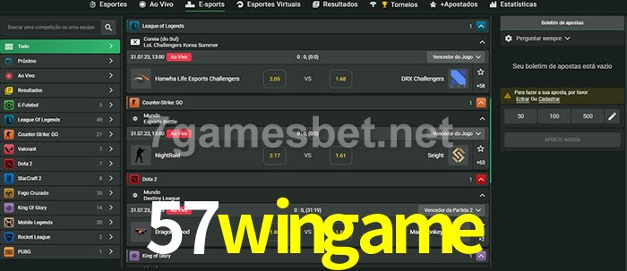 A aposta 57wingame oferece aos jogadores a experiência mais conveniente de apostas em eSports!